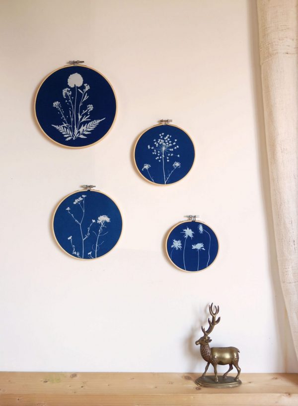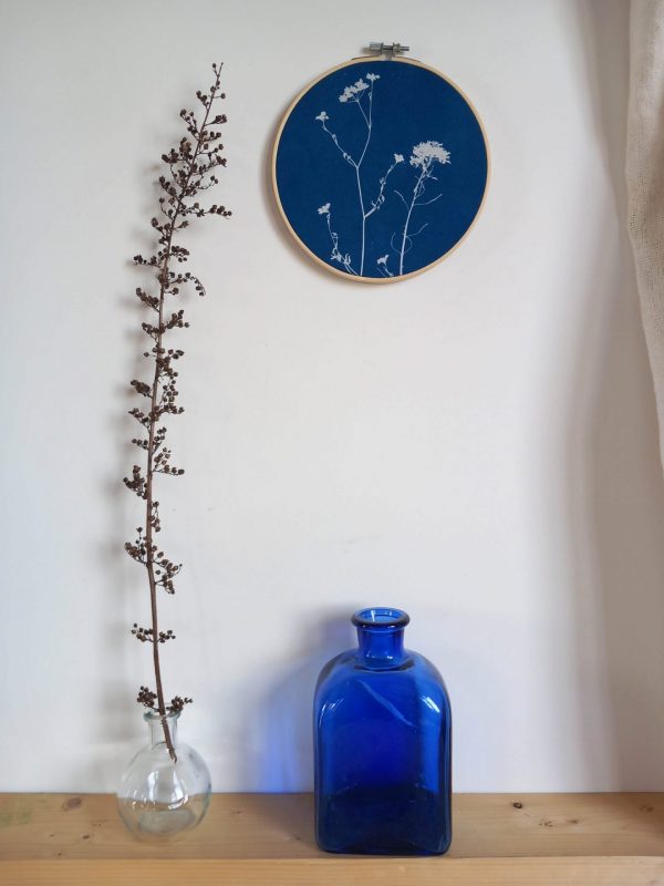 Debido a la técnica de la cianotipia, la intensidad de la pincelada y la luz pueden causar ligeras y casi imperceptibles variaciones en el resultado final de cada cianotipia, lo que la convierte en una obra única.