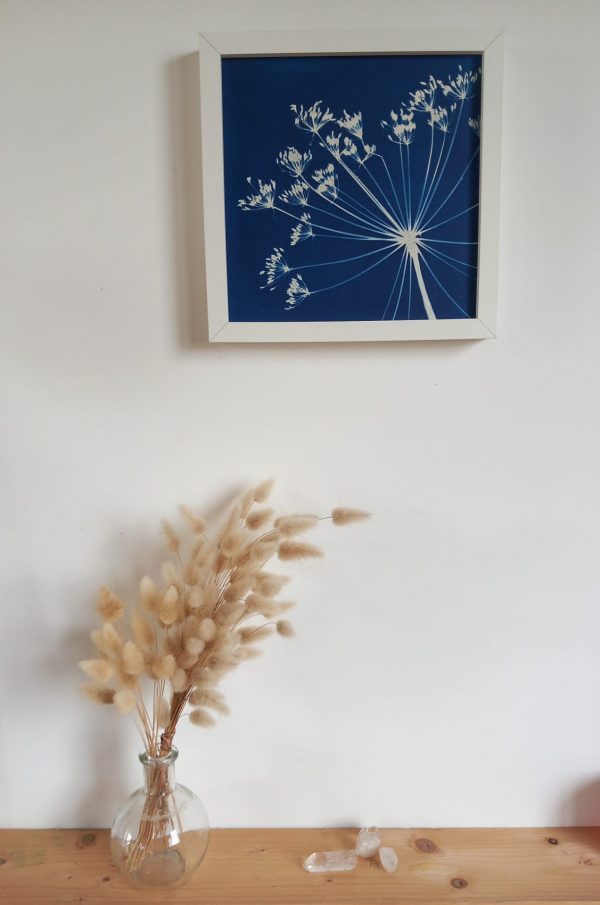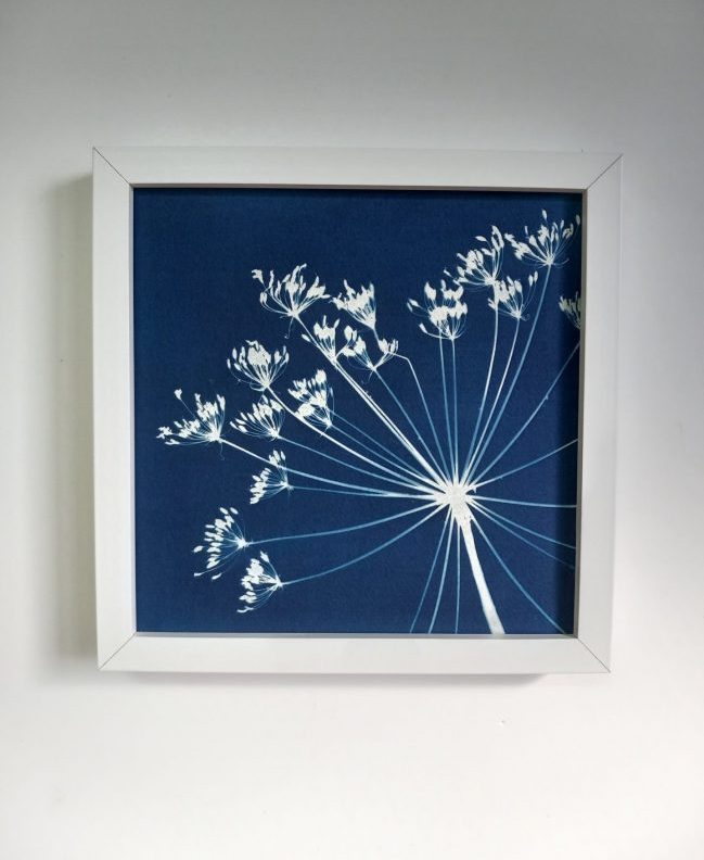 cianotipia original de la  zanahoria silvestre (Daucus carota) recolectada en la Cerdanya.
